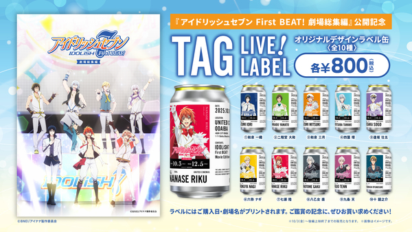 「アイドリッシュセブン First BEAT! 劇場総集編」公開記念!その日、その場所だけの特別な1本!オリジナルデザインラベル缶 ≪TAG LIVE! LABEL≫を販売!