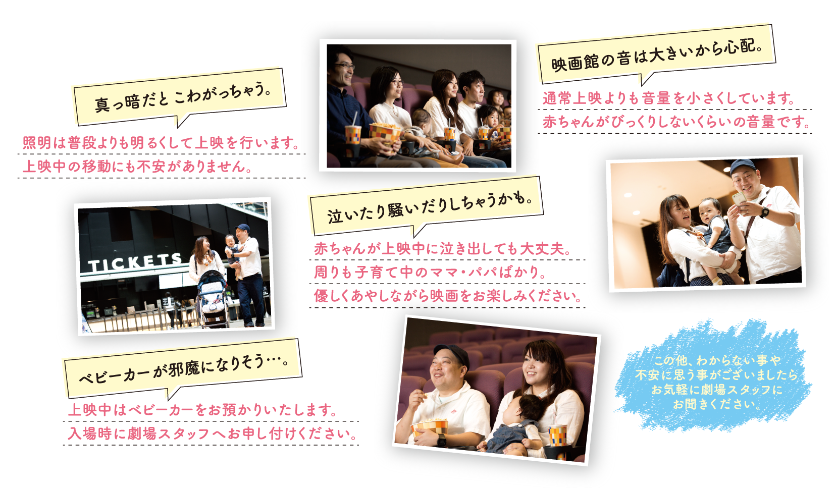 小さいお子さんがいるけど上映中に預けておく場所がないので一緒に入場するしかない・・・でもきっと周りの人に迷惑をかけちゃう・・・