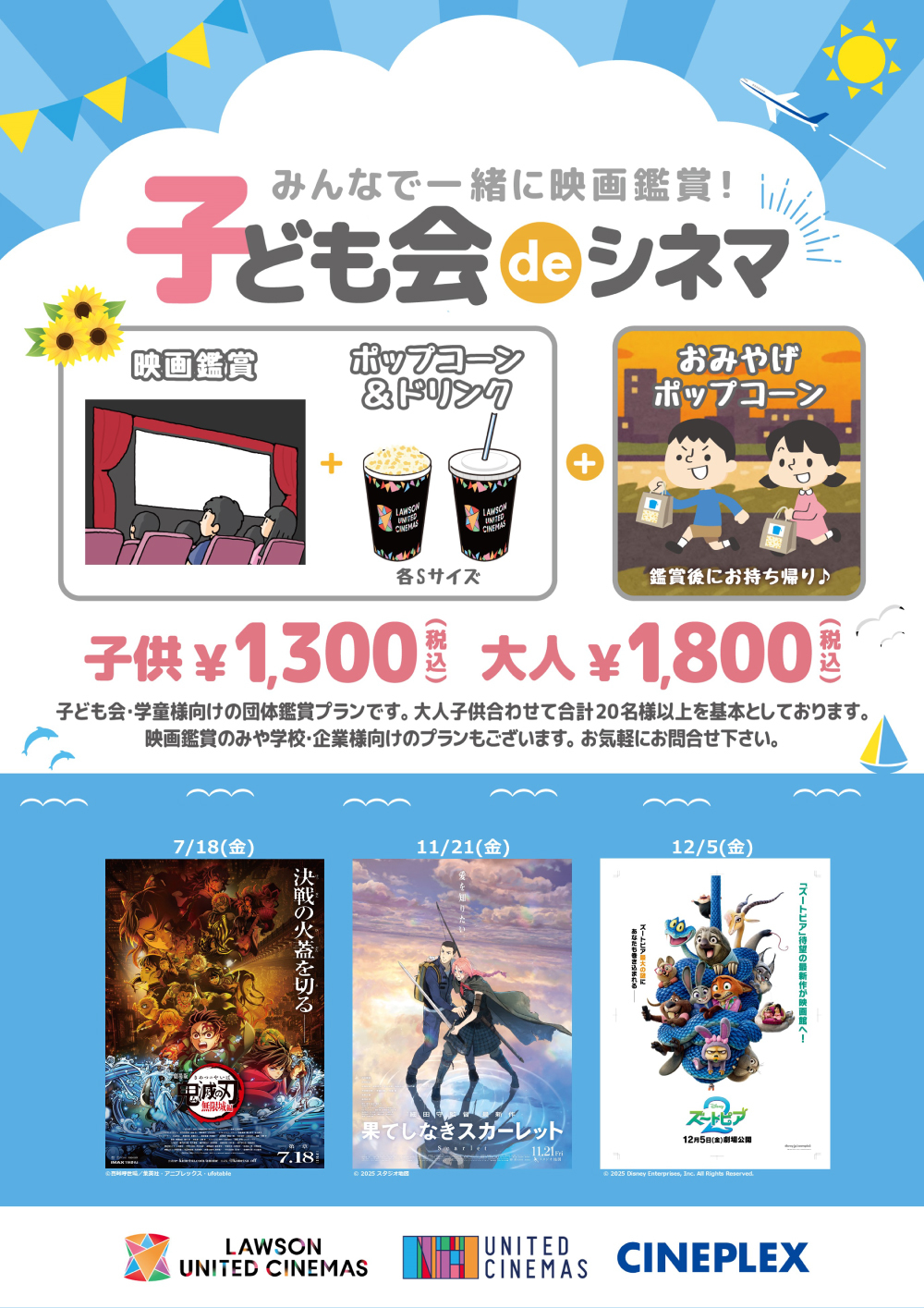 子ども会での団体鑑賞にピッタリのプランをご用意いたしました。