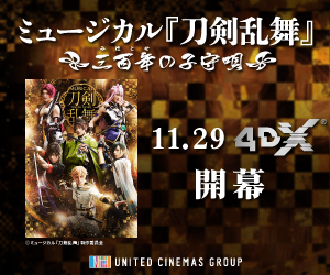 - ミュージカル『刀剣乱舞』 〜三百年の子守唄〜4DX版 11/29(金)より2週間限定上映! 入場者プレゼント、オリジナルポップコーンセットの販売が決定!