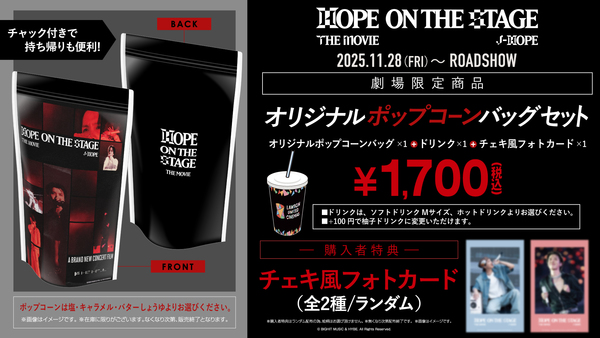 「j-hope Tour 'HOPE ON THE STAGE' THE MOVIE」公開記念!【《チェキ風フォトカード付き》ポップコーンバッグセット】11/28(金)〜発売!
