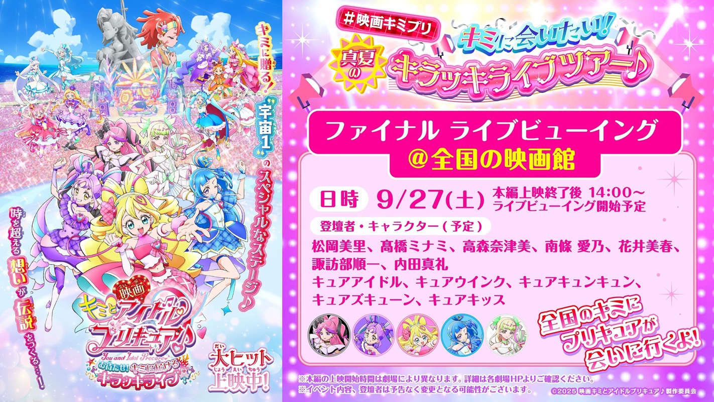 絶賛上映中『映画キミとアイドルプリキュア♪ お待たせ!キミに届けるキラッキライブ!』の「#映画キミプリ キミに会いたい!真夏のキラッキライブツアー」ファイナルライブビューイングの開催が決定いたしました!