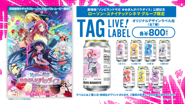 「劇場版『ゾンビランドサガ ゆめぎんがパラダイス』」公開記念!その日、その場所だけの特別な1本!オリジナルデザインラベル缶 ≪TAG LIVE! LABEL≫を販売!