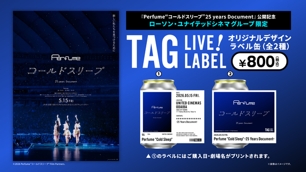 「映画『Perfume“コールドスリープ”-25 years Document-』」公開記念🎤✨ オリジナルデザインラベル缶【TAG LIVE! LABEL】を販売!